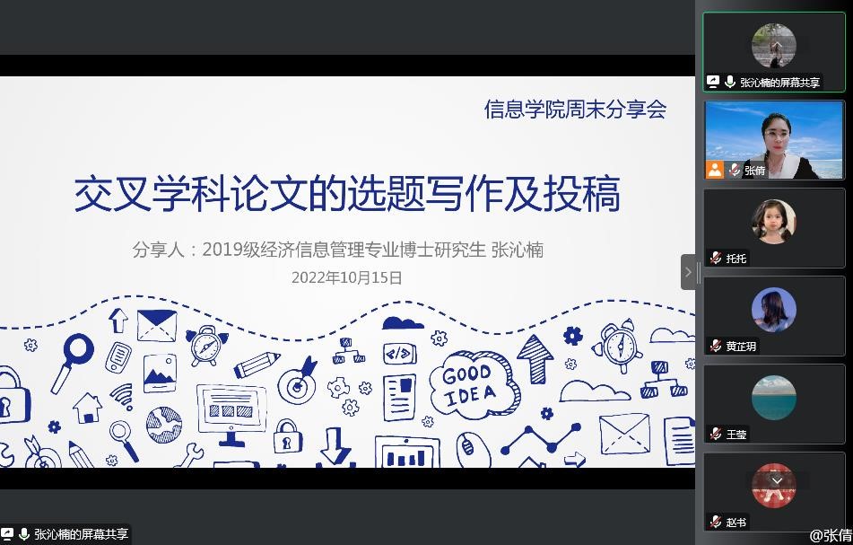 为方便BETVICTOR在校生获取求职经验、科研分享、学习方法、实习资源、职业规划等主题在内的资源,公司积极拓宽与优秀员工沟通的交流渠道、搭建信息资源共享平台、积极发挥朋辈助成长的作用,切实将师生做实事好事的政策精神落到实处。10月15日下午,BETVICTOR第8期《关于硕博阶段学术创作的那些事——科研论文经验分享》的周末分享会顺利召开。本期分享会由2017级经济信息管理专业的博士生齐托托(硕博连读)和2019级经济信息管理专业的博士生张沁楠作为嘉宾,从“撰写学术论文的前期准备”和“交叉学科论文的选题写作及投稿”两大主题向同学们进行了专业而耐心的分享。BETVICTOR全体硕士研究生和部分本科生参与了本次线上分享活动。