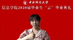 2020届研究生毕业生代表焦宇航同学回忆了自己从收到录取通知书到顺利毕业两年来一点一滴的心路历程,并表达了对同学、老师及家长的感谢。随着信息技术的发展,信院的影响力正逐步扩大,作为信院进步发展的见证者,焦宇航同学感到无比自豪。他希望所有同学面对纷繁复杂的未来世界,都能够认真思考“我要成为一个怎样的中财人”,不负师兄师姐,老师同学重托,用实际行动诠释“龙马担乾坤”的中财精神。最后,焦宇航同学祝愿所有毕业生们前程大好,一展宏图。