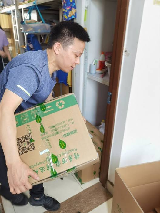 公司教师们积极投入到工作中,与员工们一边视频一边打包行李,一一确认物品存放位置,做好沟通交流,且关注关照员工的需求,周到考虑员工的隐私,在女生宿舍由女老师负责叠放衣物、收拾床铺,男老师负责收拾书籍、搬运物品、封装包裹。