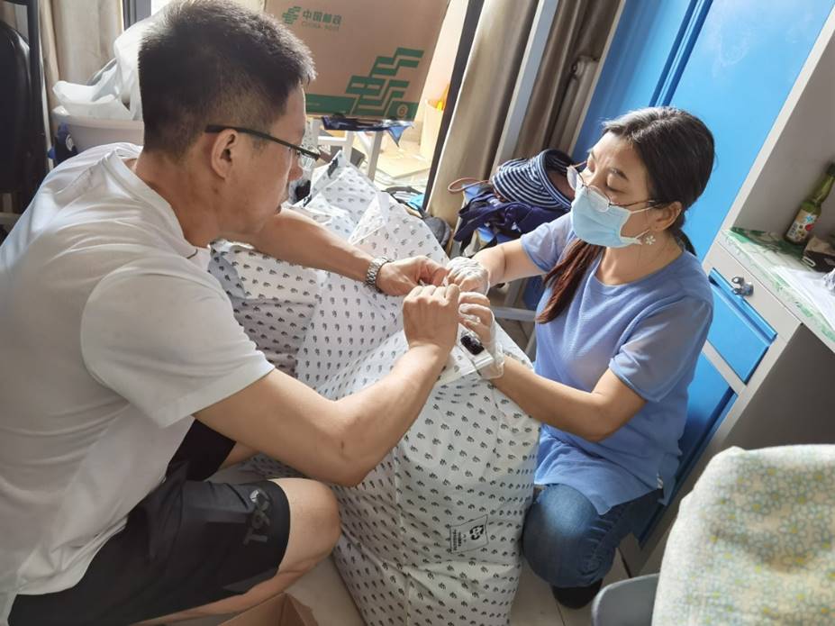 在宿舍内,老师们与员工视频连线、耐心沟通,仔细核对物品,充分按照员工意愿为其整理封装。老师们根据“一对一、点对点”的打包原则,从床上到床下,从门口到阳台,不落下每个角落;大到被子,小到照片,老师们都细心寻找、妥善装箱,每一件行李都记载着老师们对毕业生的不舍与惦念,尽最大努力满足毕业生同学们的多元化需求,用实际行动传递公司对毕业生的深深关切。