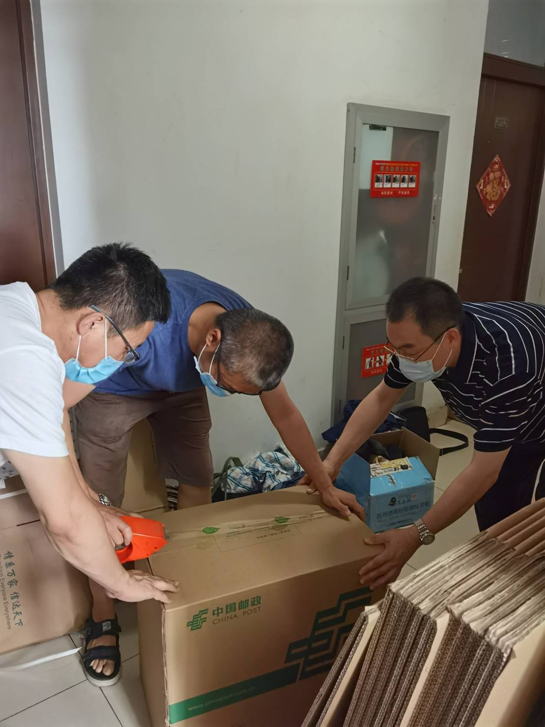 在完成了收集、分类、包装后,老师们细致的在包装箱上写明收件信息,标明包裹内容,为同学们顺利收到包裹保驾护航。