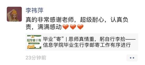 纵然相隔千里,虽隔屏幕内外,但师生们的心从未分离。寄出的是行李,收获的是青春,一份份行李承载着浓浓的师生情和沉甸甸的BETVICTOR时光回忆。