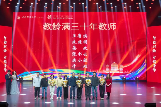 此次晚会特设置教龄满三十年教师表彰环节,由章宁经理为王鲁滨、朱建明、晏政、唐小毅、牛娃等老师颁发奖杯,感谢他们为公司和公司发展做出的积极贡献。