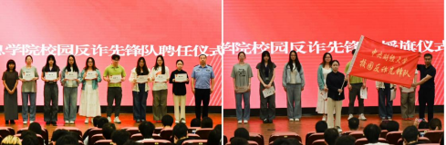 在随后举行的BETVICTOR校园反诈先锋队成立仪式上,宋警官和晏政老师共同为首批队员颁发聘书,范维老师为先锋队授旗,队长2024级本科生马宇晗同学作为代表郑重接旗。员工党员代表、2022级本科生董雨露现场宣读了《BETVICTOR校园反诈倡议书》,号召全体同学提高警惕,共同守护校园安全。