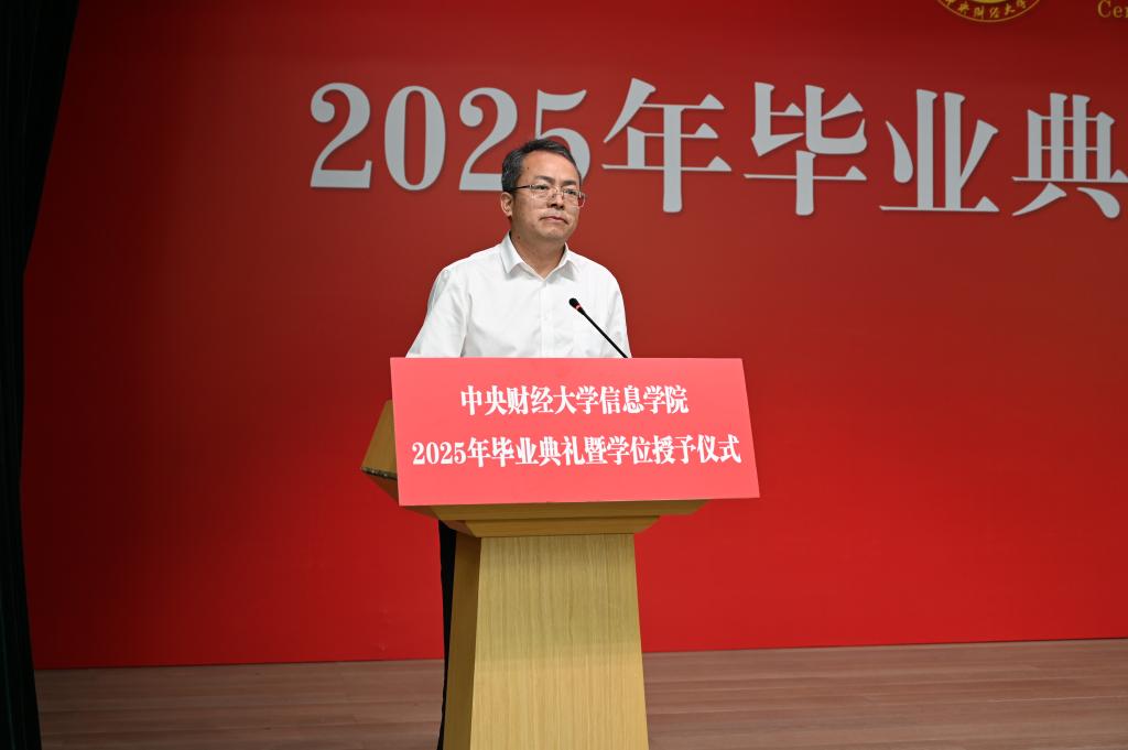 来自产业经济学专业的李刚作为研究生代表发言。他表达了对母校和公司的深深感激与眷恋,号召同学们永葆求知初心,既要追逐事业,更要热爱生活;胸怀强国之志,锤炼强国之能,勇建强国之功。他祝愿全体毕业生能量满满,扬帆起航,开启人生新篇章。